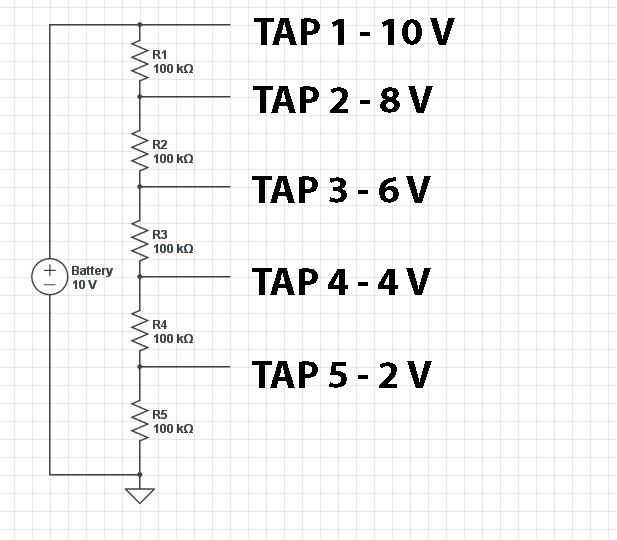 Decir que desea ser capaz de obtener 2 voltios, 4 voltios, 6 voltios, 8 voltios y 10 voltios para algunos diseño de circuito y todo lo que tienen disponible es de 10 voltios y tierra.