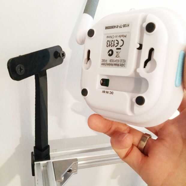 -cámara de bebé tiene 2 orificios para montaje a la pared con 2 tornillos.