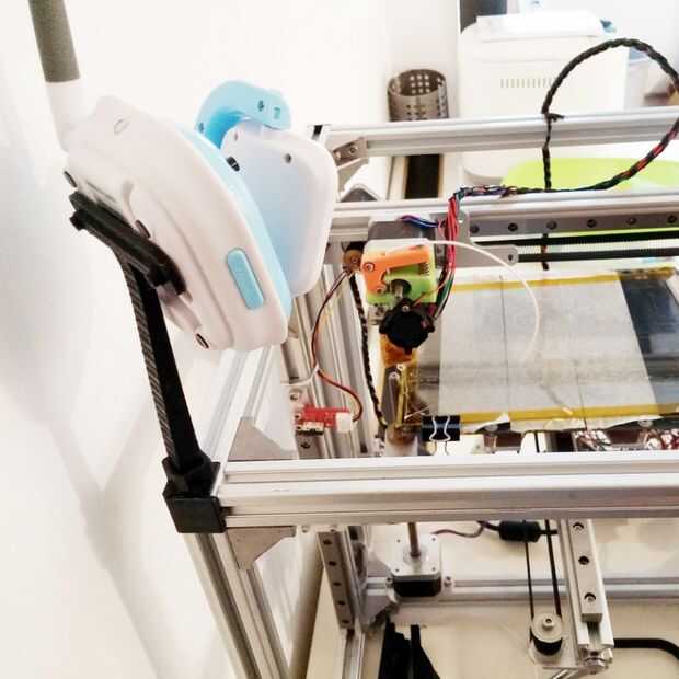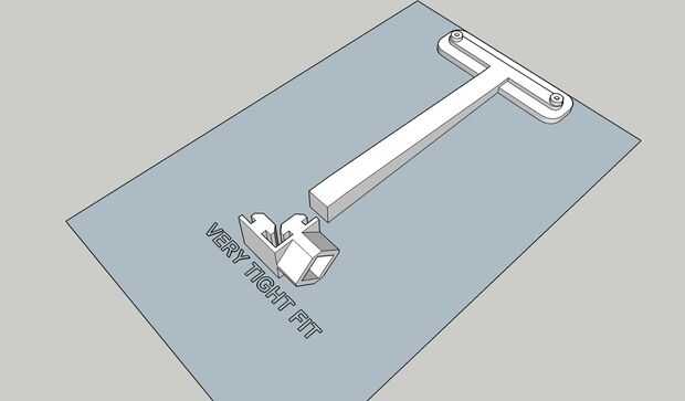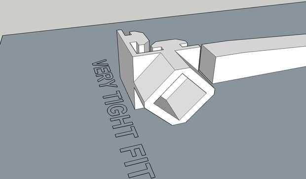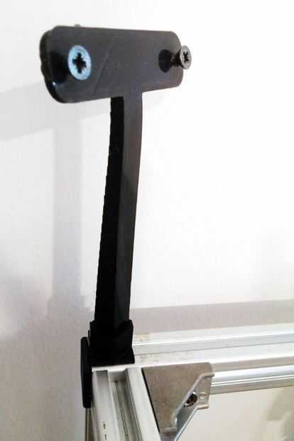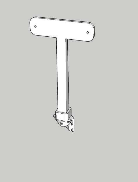 El soporte de T fue impreso por separado de la conexión de socket, para optimizar la dirección de impresión. El soporte de T fue impresa, mientras que la conexión de socket que se desliza en los canales de Perfil de aluminio de mi impresora 3D fue impreso en su lado.