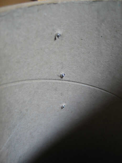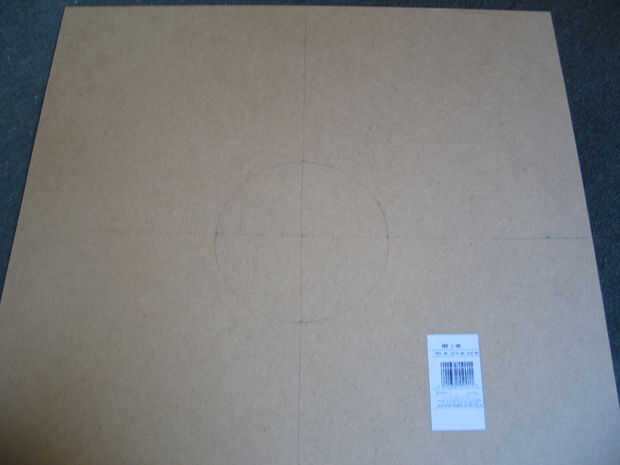 Encontré el centro del base panel (el tablero del MDF de 600 x 600 mm) y señala a donde irían los soportes con respecto al tubo de cartón. Luego perforé los agujeros para los pernos que pasan a través de la placa base y orificios para los tornillos en el tubo.