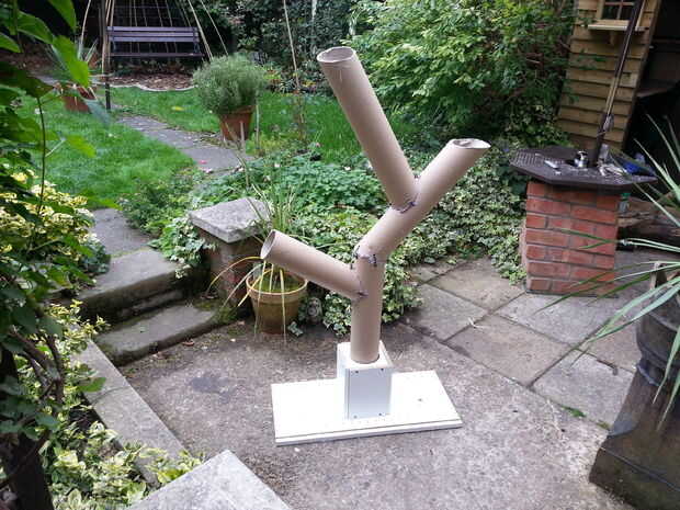 Las uniones se hacen con cantidades copiosas de pegamento caliente y bridas amplia (estrecho que se cortar en el cartón!)