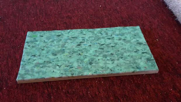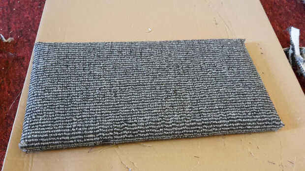 Cortar alfombras a medida, ligeramente más grande que la plataforma (adicional 2-3 cm por cada lado). Colocar alfombra con cinta de doble cara.