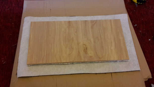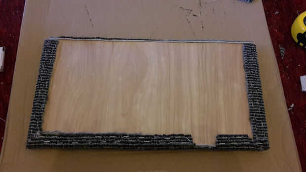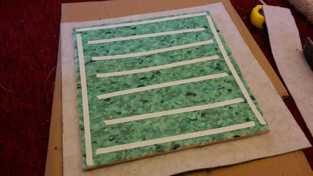 Opcional: Corte alfombra arpillera del mismo tamaño que la plataforma y fijar con cinta de doble cara. Algún tipo de espuma también podría utilizarse en lugar de arpillera.