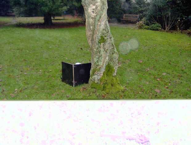 punto su foco en el cielo y luego inclínela un poco para que brilla en el árbol, tenga en cuenta que la atención debe ser en el lado del árbol que no está viendo. luego poner los 3 trozos de madera que bloquean el punto de vista (también en el lado no visto del árbol, cuadro)