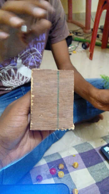 Tomar dos piezas de madera y cortarlo de forma cuadrada y fijar las piezas de madera con la ayuda de la pistola de pegamento caliente.