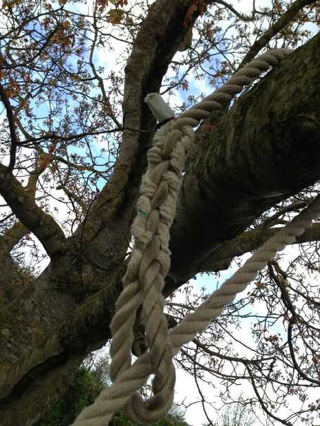Tiro la cuerda sobre el árbol y el final 'gratis' por el ojo de la alimentación.