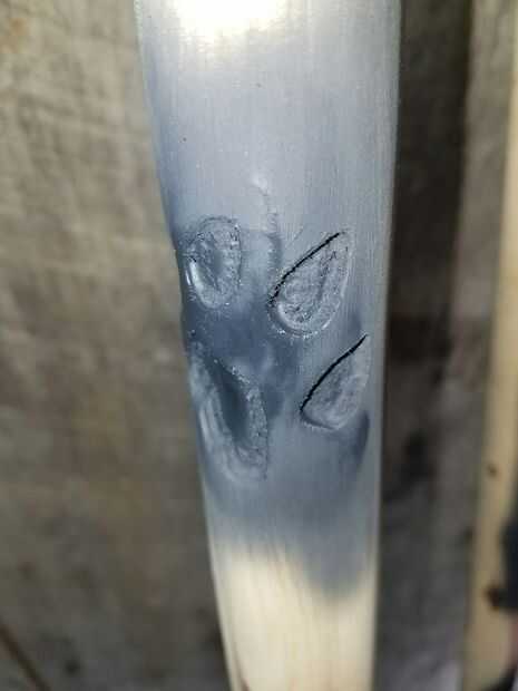 Después de cortar las pistas y los nombres a aerosol pintado negro para ayudarles destacan del cedro.