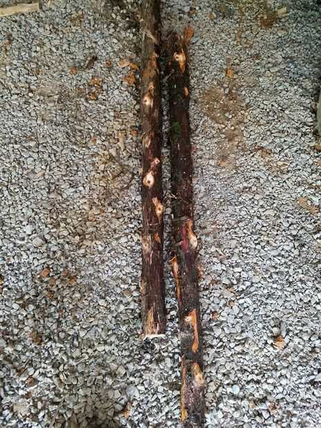 Cortar algunos árboles de cedro aproximadamente 6 pies de largo y 2-2 1/2 pulgadas de diámetro... (preferiblemente fresco mientras la corteza se pela más fácil)