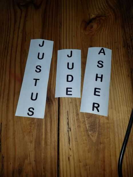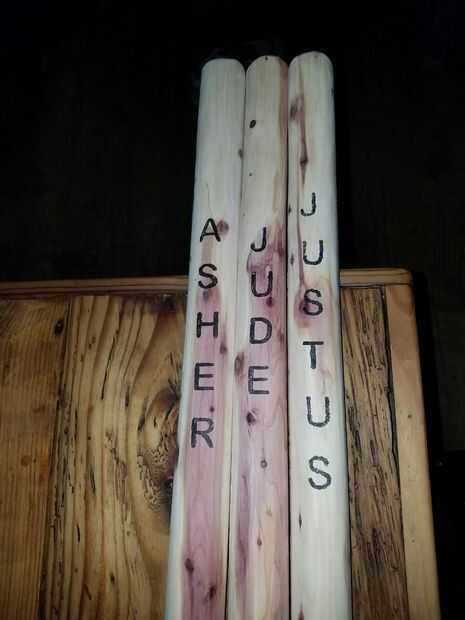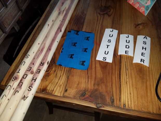 Si usted decidió personalizar su memoria (que no :)) ... Opté por poner sus nombres y algún animal pistas sobre ellos. Así que imprimí algunas pistas así como sus nombres y había trazado en los palos con el papel carbón.