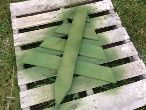 un simple árbol de Navidad de una paleta, unos tornillos y alguna pinturaPaso 1: Hacer el árbol Buscar una plataforma para su árbol y marcar la forma.Para facilidad y rapidez, utilice una sierra circular para cortar a lo largo de las líneas (se puede