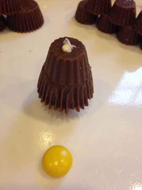 Para colmo su creación, derramar algunas Reese piezas o m & m ' s en un plato. Pedazos de Reese amarillos funcionan bien para una estrella, mientras que el rojo m & m ' s look festivo. Aplique hielo en la parte superior del árbol, no necesita mucho. Seleccionar su cobertura y colocar en la parte superior del árbol.