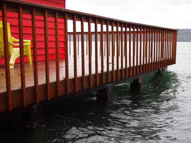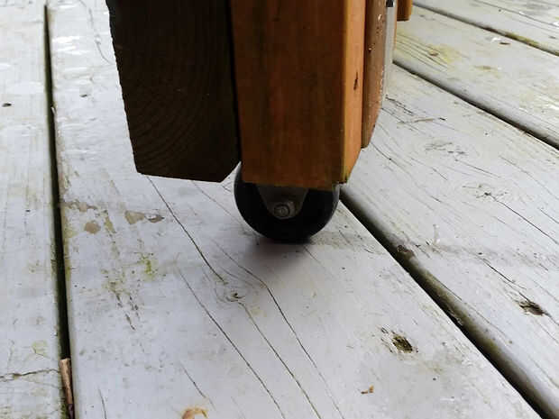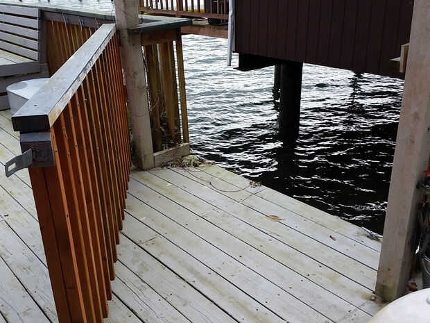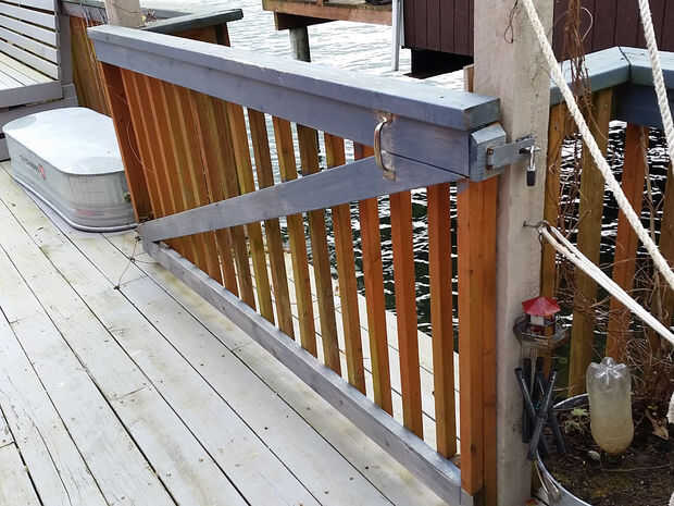 Necesitábamos una zona de acceso de la cubierta que estaba suficientemente grande para pequeñas embarcaciones. Pudimos lograrlo por recortar una sección de la barandilla y reasignar a un grande de la puerta mediante el fortalecimiento, apoyar y agregar hardware de la puerta. También hemos añadido una rueda de goma en la parte inferior para ayudar a abrir. Como un bono de la puerta coincide con la barandilla original y encaja bien con el resto del diseño.