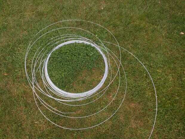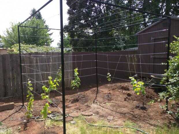 Para las líneas que las vides de uva va creciendo, usé alambre galvanizado. Compré una bobina de 500 pies de alambre de Viña de http://www.orchardvalleysupply.com/.