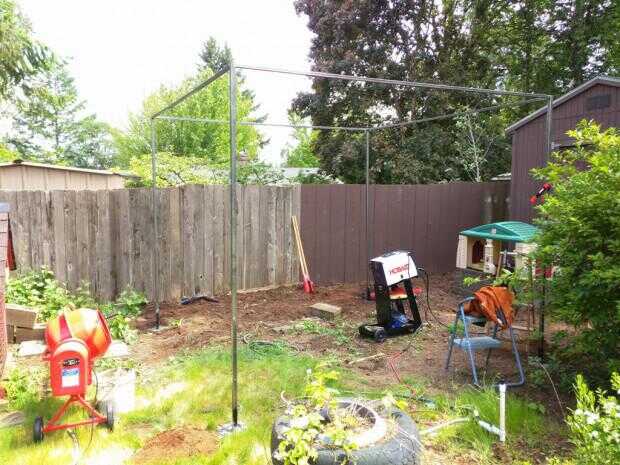 Colocamos la estructura de juego de nuestra hija en un lugar equivocado en nuestro patio. Ella nunca ha gustado a jugar allí, que quería la hierba, así que decidimos mover su estructura de juego sobre la hierba y... encontrar algo más que construir donde estaba la estructura de juego.