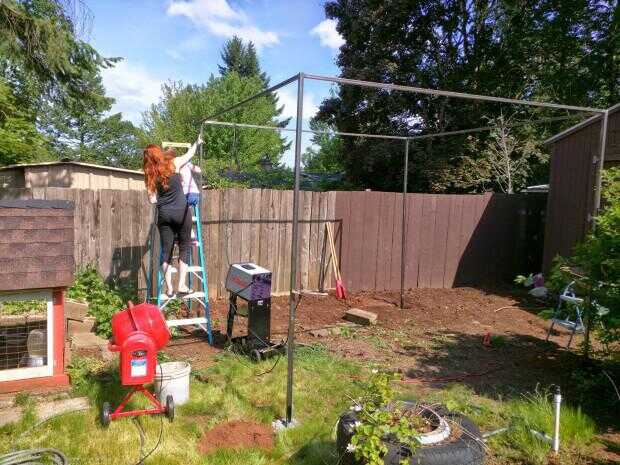 Y cómo parece la estructura final. Ahora solo esperamos las plantas de uva crecer y cubrir todo, prometo que voy a publicar una foto cuando eso sucede.