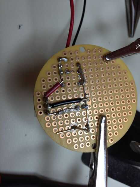 6. soldadura de las dos resistencias, que conforman el circuito divisor de tensión.