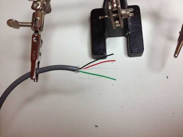7. Corte el cable USB unos 6-8 pulgadas desde el extremo hembra y tira lejos el aislamiento y protección