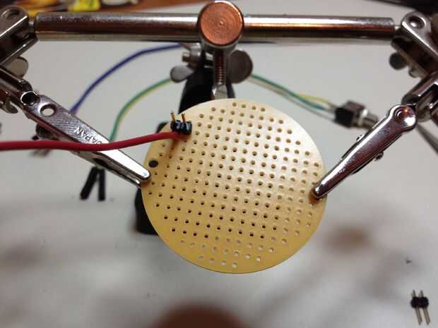 Usé un tablero redondo proto ir con el tema alrededor del proyecto, pero fácilmente puede utilizar una plaza aburrida Junta. También decidí usar los cables de puente para el interruptor y LED por lo que fácilmente podría desconéctelos de la placa de circuito después fueron montados a la maceta. (Lo que un sonido extraño oración.) Usted podría apenas como fácilmente alambre les a la Junta.