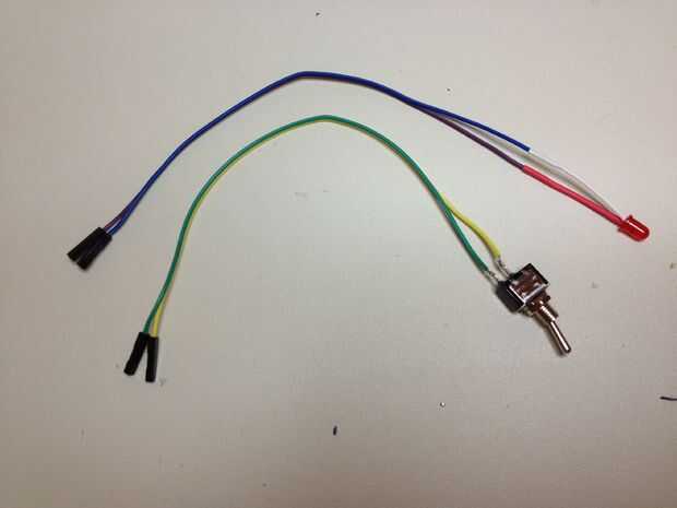 10. soldar los cables de jumper con conectores hembra al interruptor y LED. Recuerde deslizar algún abrigo del encogimiento en los cables antes de soldar. He encontrado que es muy difícil llegar allí después!