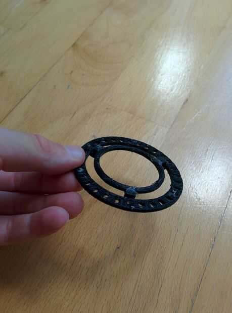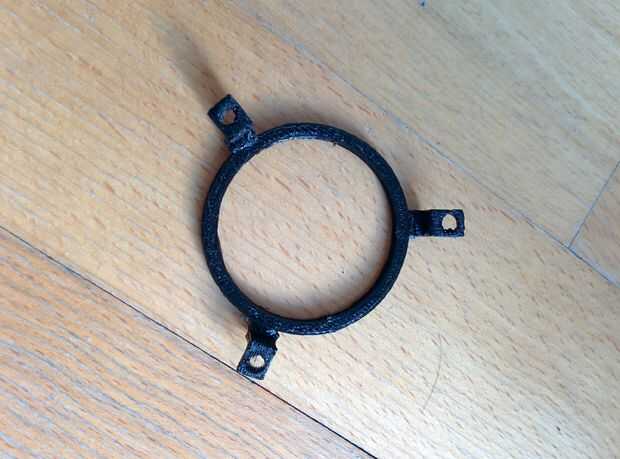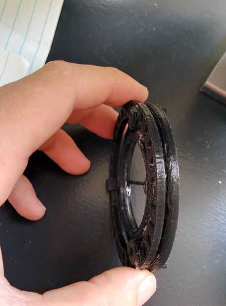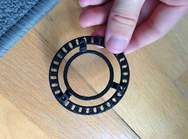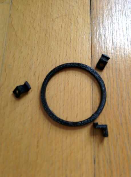 Las tripas se componen de 4 partes principales (6 si contamos duplicados). Diseñé las 3 piezas de "paso" para conectar el anillo negro, que lo hice con pegamento, asegurándose de que espaciar uniformemente los trozos exactamente 33 ° entre sí. Las piezas de "paso" entonces Unidas al anillo con múltiples agujeros.