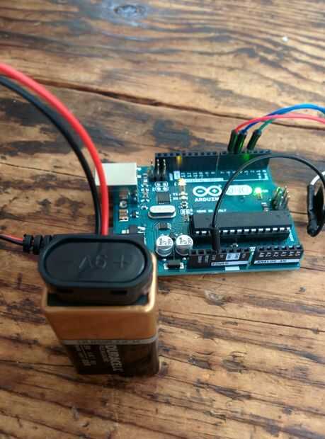 Luego conectar la pila de 9v a Arduino, y en cuestión de segundos, se enciende!