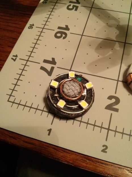 Luego usa una Dremel y cortar un pequeño trozo de nylon que es apenas lo suficientemente grande como para cubrir el centro LED. También hice esta pieza de nylon más fino para la profundidad del Reactor Arc. Tomé un trozo de pantalla y envuelta alrededor del trozo de nylon y caliente lo había pegado en la espalda. Luego coloqué las dos piezas de nylon en los LEDs para ver cómo se veían. Luego caliente pegué el pedazo de nailon al centro LED sin poner pegamento directamente en la cara el LED.