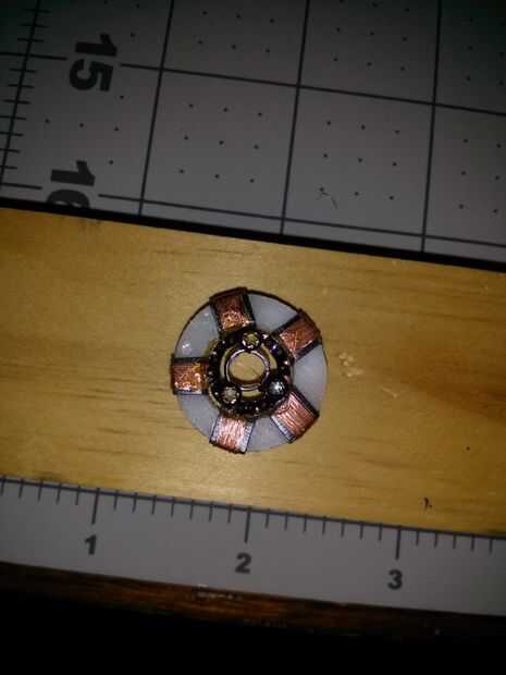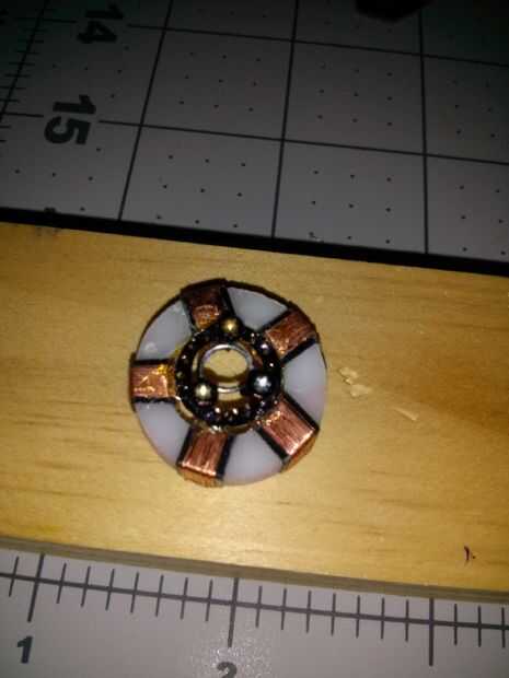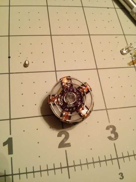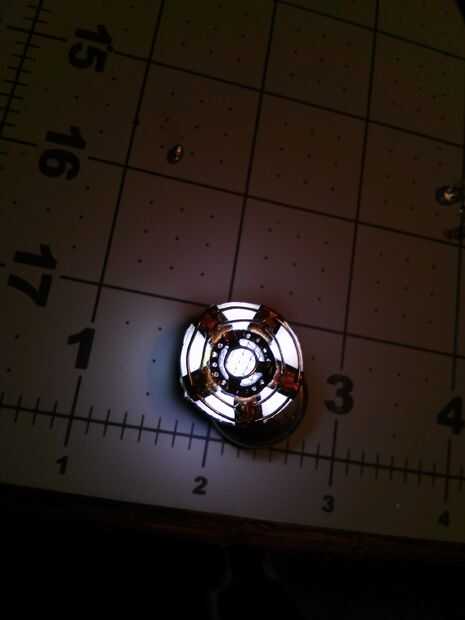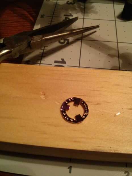 He utilizado el metal de hoja fino y cortar un anillo que tenía un diámetro exterior que era el mismo que el interior diámetro del anillo de nylon con las bobinas en él. Utilicé una perforadora para crear el interior diámetro de la anilla de metal. Tuve que picar lejos en el interior diámetro para conseguir lo que quería. No quiero ocultar gran parte del centro de la LED.