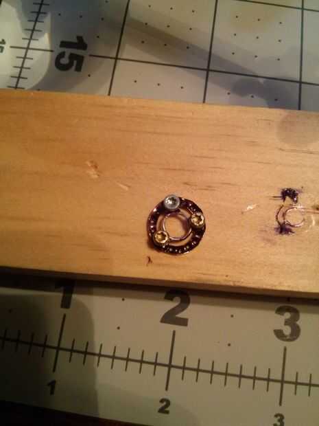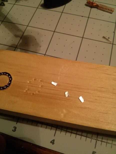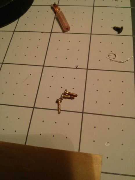 También tuvo tres tornillos pequeños y cortó las cabezas y había pegado a las tres fichas. Más tarde decidió retirar estas porque mi tornillos eran un poco demasiado grandes.