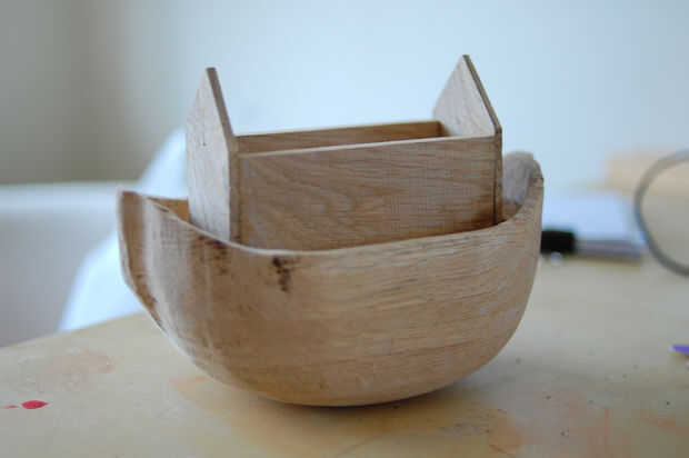 Después de mucho revestimiento refractario en la cubierta de la cabina fue finalmente pegada en su lugar sobre la espiga. The4 paredes fueron corte de algunos pedazos finos de roble recortes que tuvimos derribando todo izquierda de otro proyecto.