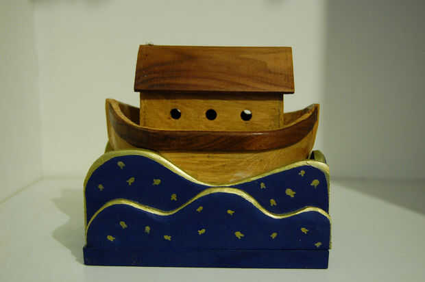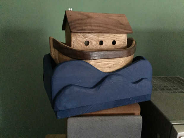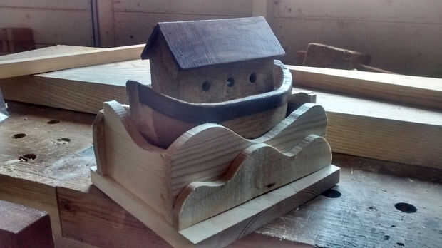 El arca entonces estuviera pegado a la base y la izquierda se seque durante la noche. La imagen de abajo muestra las olas montadas, pero éstos han no ha pegado en su lugar todavía. (No los dos blanco manchas en el techo - estas son las palomas menos la rama de olivo)