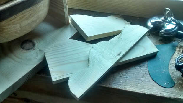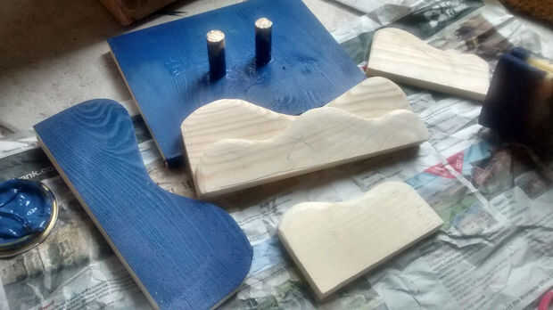 Quería añadir ondas para encajonar el arca. Así que algunos recortes de madera de proyecto actual de Dave y había rasgado en la mitad. Luego bandsawed las ondas fuera de ellos.