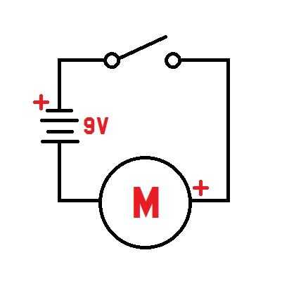 Batería de 9 voltios positivo (+)--> switch--> motor de Positve(+),