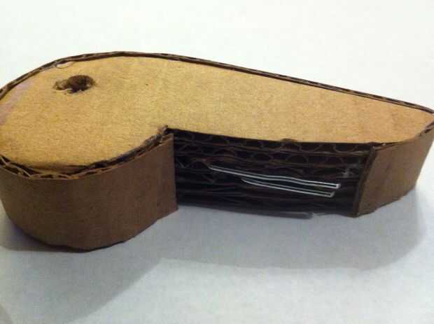 La palanca y su vivienda están locos por varias capas de cartón (con la dirección de la corrugación alternando para aumentar rigidez) casi laminada junto con una fuente sana de pegamento caliente.