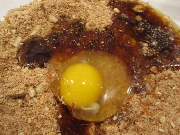Combinar el huevo, el jarabe de arce y la vainilla con los ingredientes secos. Si usa aceite de canola, un hábil truco es poner en 1/4 C de aceite de canola primero y luego poner el jarabe de arce en el mismo 1/4 C como el aceite. Esto asegurará que todo el jarabe de arce se mete en la masa.