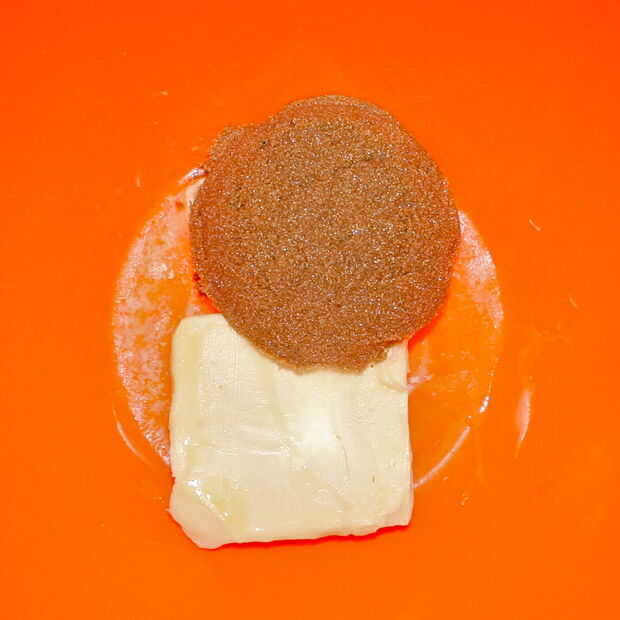 Crema juntos 1/2 taza de azúcar morena y 1/4 taza de mantequilla.