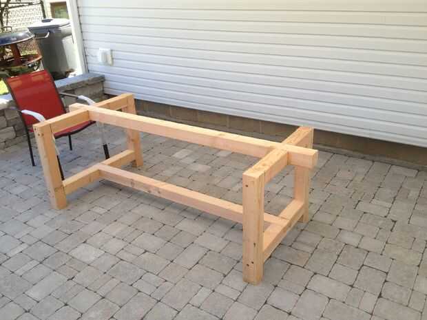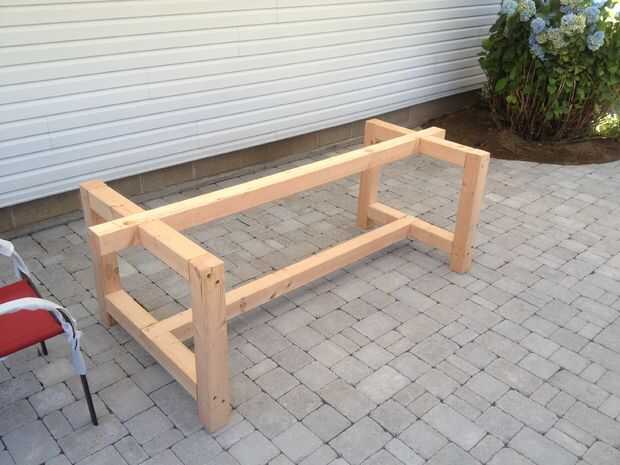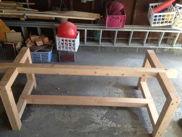 Originalmente había planeado sobre el uso de madera tratada a presión para la base (lo sé, cómo grosero...), ya estaba dejando el pasillo madera en LOWES, vi algunos hermosa madera Douglas Fir 4 x 4 - esquinas redondeadas, fuertes y menos costoso que la madera PT fea había planeado sobre el uso de. Rápidamente cambiar engranajes y cargamos con eso en su lugar. Sólo tomó 5 piezas de 8 pies para hacer esta base - con un poco a la izquierda. Perfecto! Esto hace la base más simple, más fuerte y le dio el "peso" que quería.