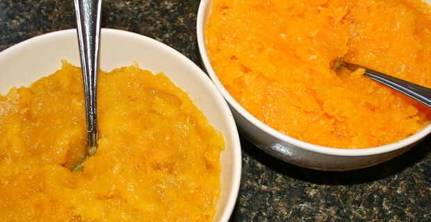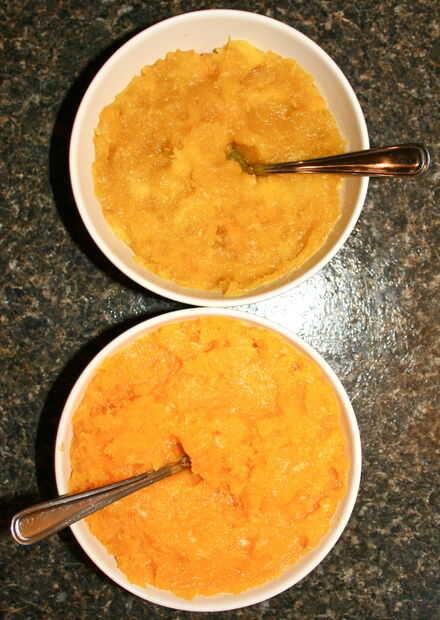 La Calabaza bellota será más ligero amarillo-naranja y dulce sabor mientras la calabaza será un naranja más cálido y más profundo y tiene un rico sabor salado. Hacer ambos y ofrecer a tus invitados una selección o seleccionar uno cuyo aroma mejor coincide con la comida prevista.