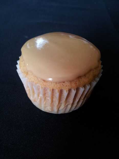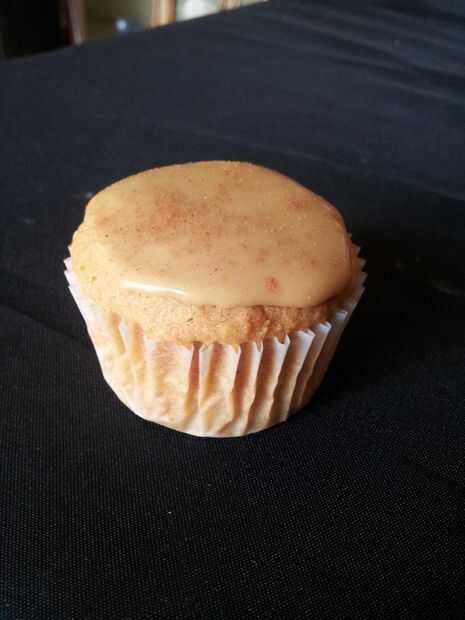 puré mantequilla Cupcakes con glaseado de queso crema de azúcar moreno-nuez moscada y una decoración de Logo de AppleMientras soñando despierto sobre el concurso de cupcake surgió con este cupcake de logo de Apple! Era muchísima diversión para hacer
