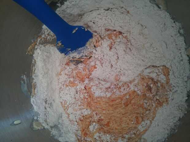 4-Añadir la mezcla de harina y revuelva hasta combinar bien.