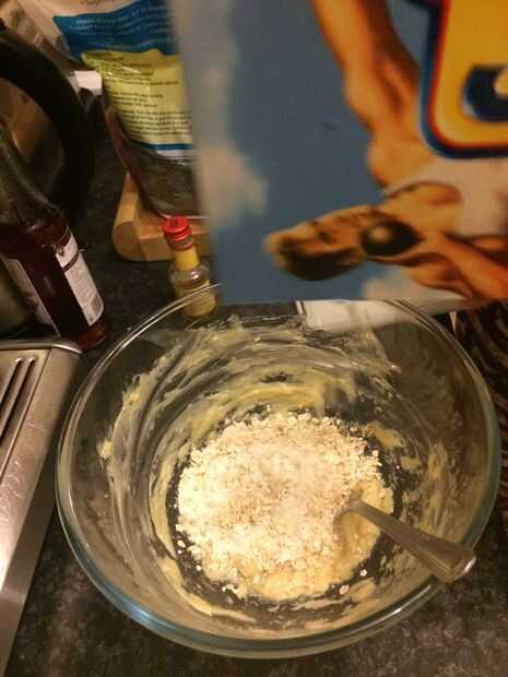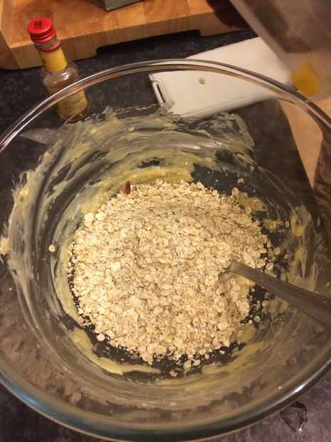 Una vez más, esto es bastante sencillo. Echar la harina, avena y los arándanos y no se olvide de la sal.