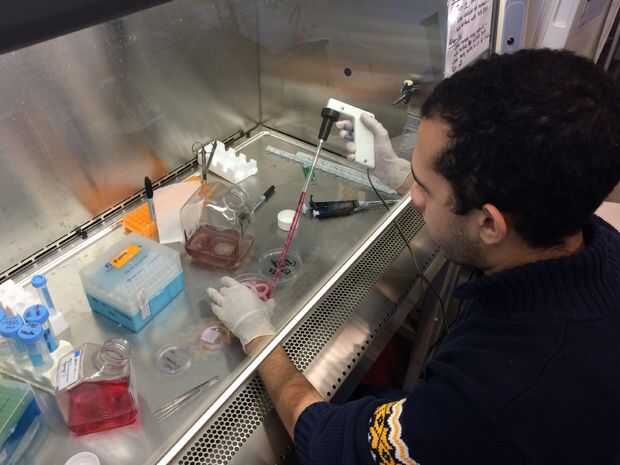 - Vas a parte paso de las células en el andamio y el resto de las células en frascos nuevos para crecer más células para experimentos futuros, o si las cosas salen horriblemente mal.