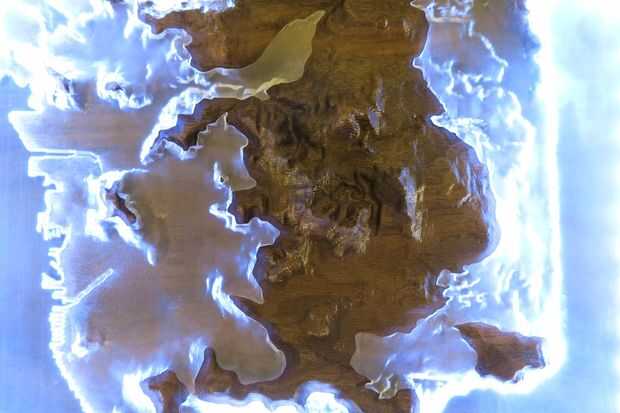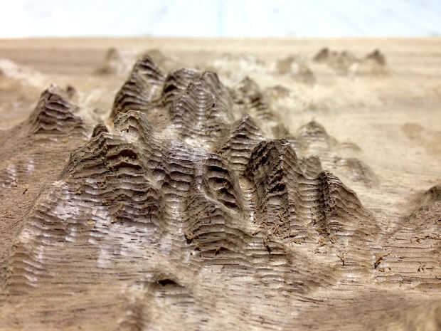 Para este proyecto, se interesó en la relación entre aditivos (impresión 3d) y sustractivo (fresadora CNC) proceso de fabricación. Si bien empecé con el mismo archivo digital, yo no estaba seguro cómo las piezas se encajan entre sí. Al final, llegaron juntos muy bien ya que estaba usando herramientas más precisas. Terminé la topografía de la CNC en la nuez con una bola de 1/8 bits. La impresión 3d fue hecha con una resina base Connex 500 impresora. Una vez que iluminó la subida del nivel del mar impreso resina transparente con luces LED, brillaban de capas de hielo antártico. Esto me hizo feliz.