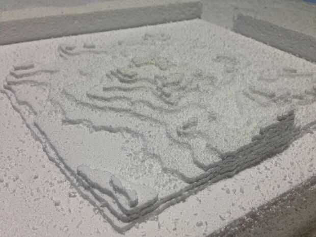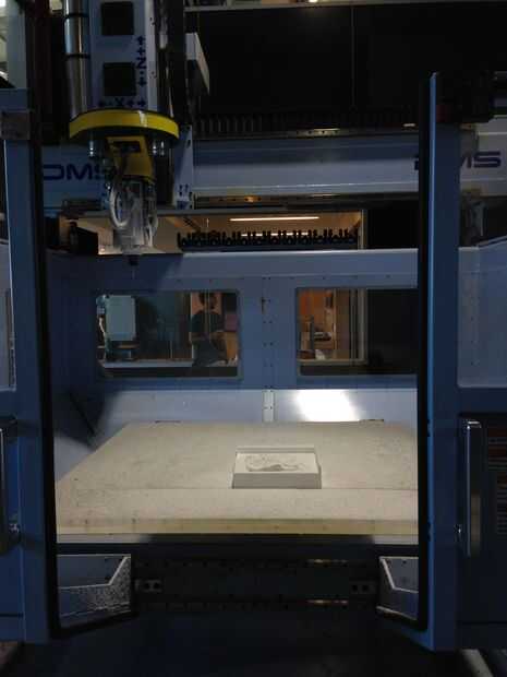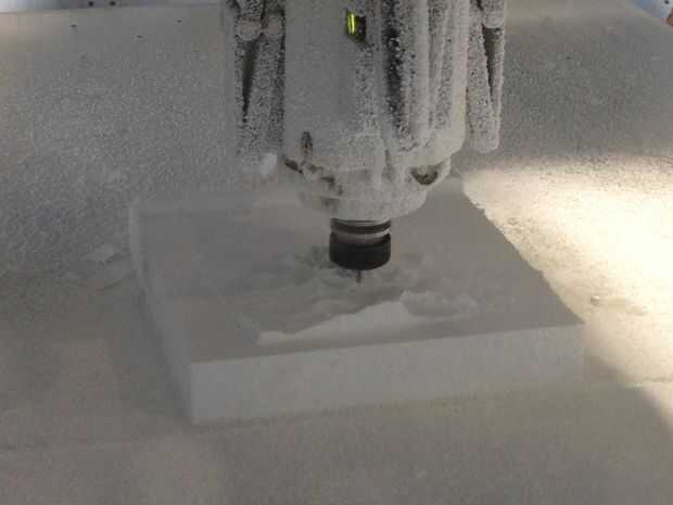 Antes de saltar recto en madera, decidí darle una prueba de mis trayectorias de herramienta en un bloque de espuma. Esto también me dio la oportunidad para ver la resolución que podía esperar de las brocas de fresadora. Había molido la pieza en el eje 5 DMS cerrado Router en el muelle 9 taller. Pura genialidad!