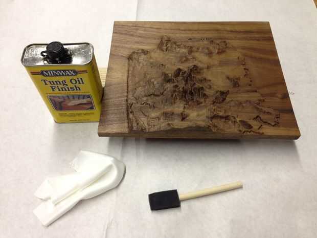 Para terminar la topografía de nuez molida de San Francisco, me decidí por el aceite de Tung. Me gusta este producto para el aspecto final y porque es un producto relativamente "verde". Mientras que es resistente al agua, que termino usando un acabado satinado en la parte superior el aceite de Tung para protección adicional.