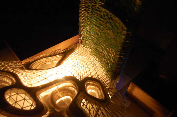 Modelo de PDRacer en tamaño 1:10 de madera de balsa y contrachapado.