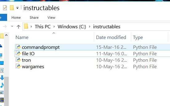 Como podemos ver que hay ningún archivo de texto en la carpeta de C:\instructables en este punto.