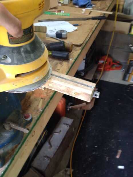 Cortar algunas piezas de roble rojo y lijar las esquinas. Tengo contacto con algunos remaches de cubiertos y los utiliza para mantenerlos juntos.
