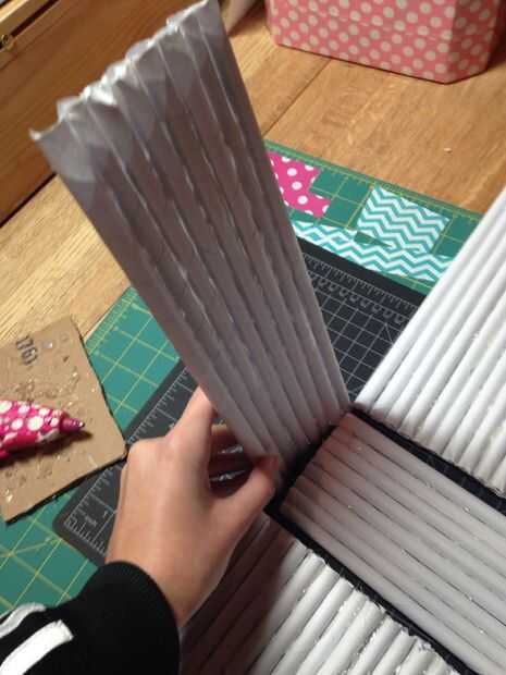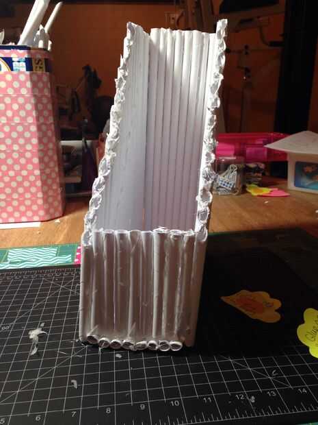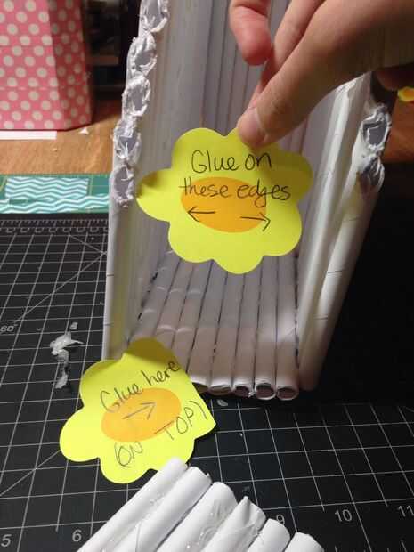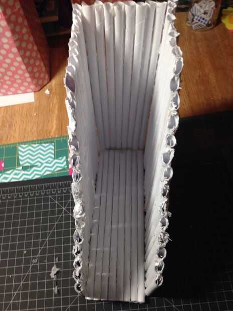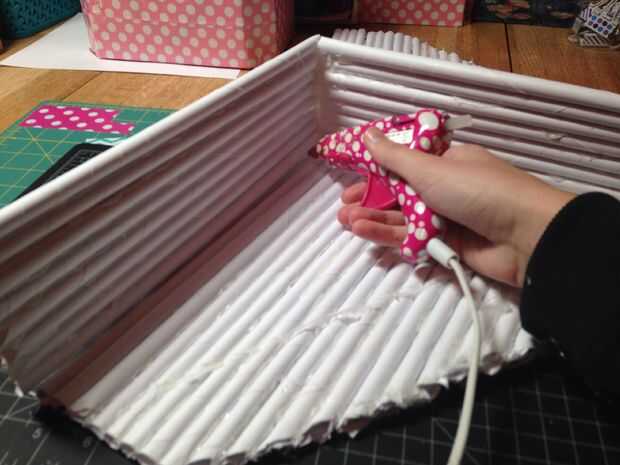 Tome la pieza posterior y pegamento caliente en la parte posterior de la pieza inferior. Esta es la pieza más difícil pegar porque tienes que esperar a que el pegamento se seque para que sea autónomo. Gancho agarrador de basura puede o caja y apoye la pieza posterior contra él. A continuación, pegar a lo largo de la parte inferior lado y lado borde de la espalda mirando hacia usted. Levante el lado y adhieren firmemente a las dos piezas. Una vez seco, puede colocar el archivo de revista sobre la mesa con el lado que sólo había pegada hacia abajo. Retocar las juntas de pegamento con cola más para la fuerza. Ahora pegamento a lo largo de los bordes de dos opuestos que a pegado y pega el segundo lado abajo. Después de hacerlo, puede establecer el archivo de revista vertical. Pegar la parte delantera, apriete el pegamento sobre los bordes interiores tres y empuje el frente alto corto de 4 pulgadas en su lugar. Es la adición de mantener allí durante un minuto, como esta pieza acabado se quiere saltar o doblar debido a la ayuda.