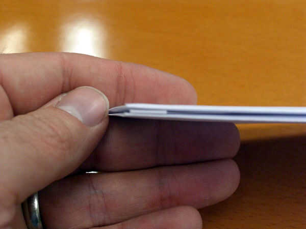 Tomar cada par pegado y doblarlas para que la tira de pegamento está dentro.