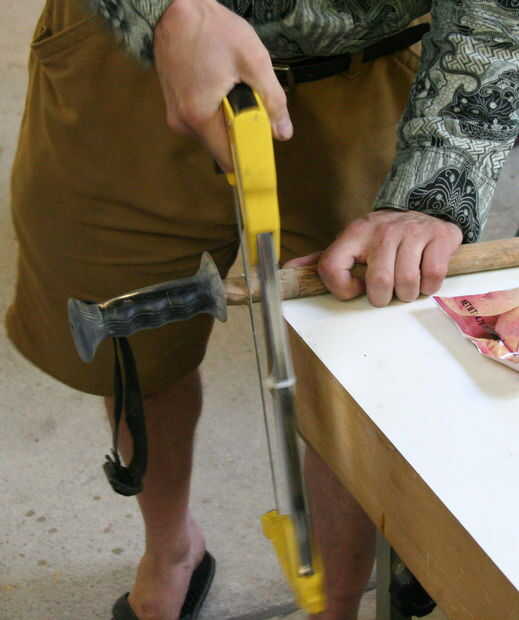 Jam en cuanto se pueda, luego cortar con bastante pendientes de él en libra tan profundamente como usted necesita.